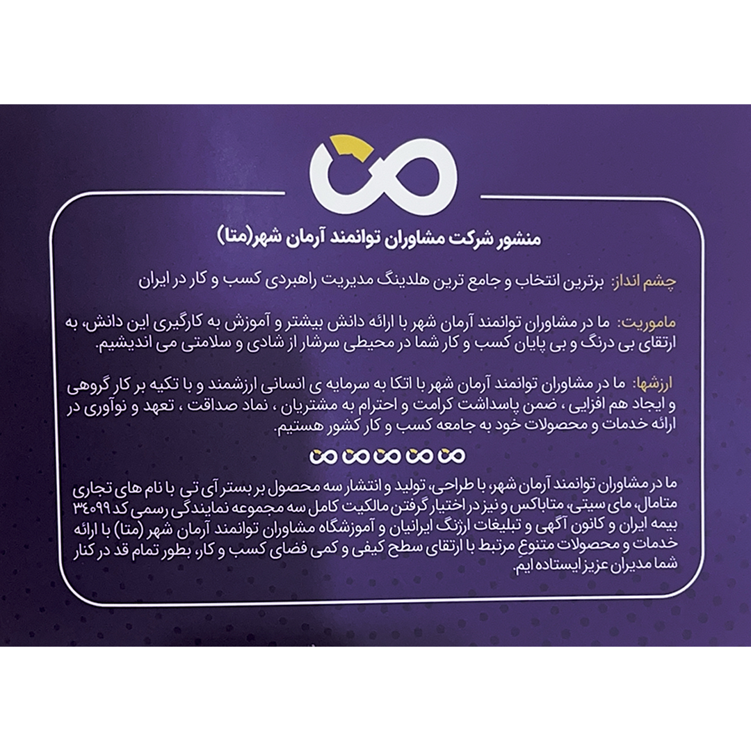 مدیرعامل شرکت مشاوران توانمند آرمان شهر (متا) دانش آموخته ی دکترای مدیریت حرفه ای کسب و کار (DBA)